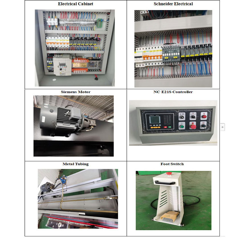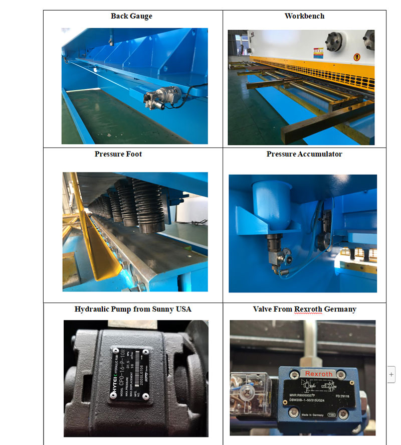 4. Bladbalkarnas rörliga bana lutar framåt mot bottenbladets stödyta, så att du kan få en fin skjuvyta. Domkraftsskruvar på det övre bladet ger en finjustering för att minimera "trasa" eller "gradning" på den avklippta kanten av materialet. Nedhållningsenheten antar fjärilsfjädrarna. Det finns antisladd hälblock på nedhållningsanordningen på nedhållningsplattan. Trycket är större, men det skadar inte plåtytan.